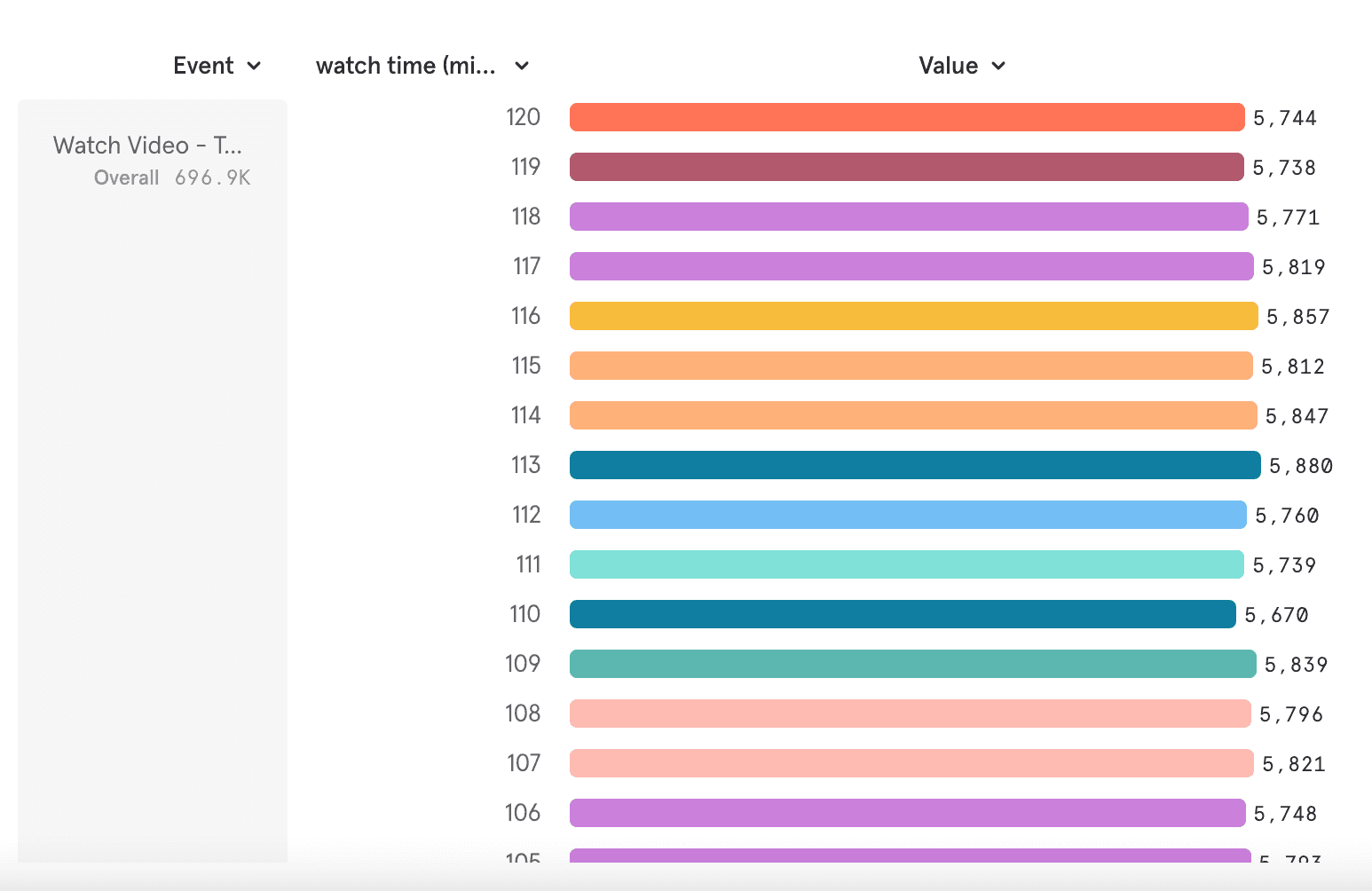 - Compare # users based on duration of video watched: < 30, 30-60, 60-90 mins