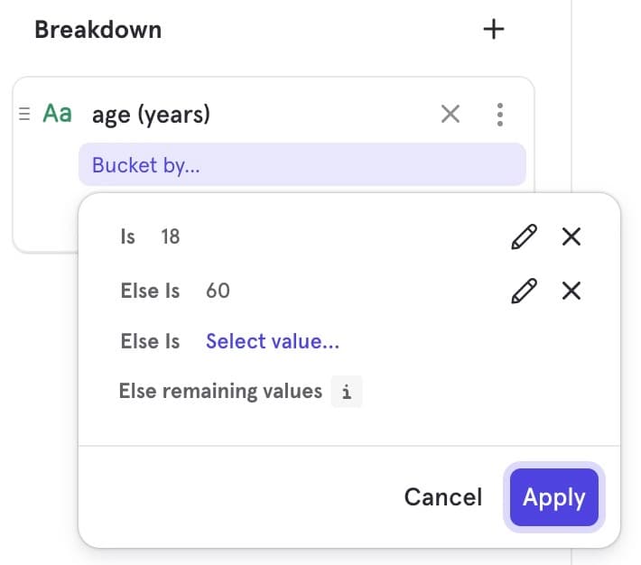 Custom buckets let you group existing properties into meaningful segments on the fly. This is focused on enabling every person to answer common segmentation questions easily, quickly, and in a low-friction way.