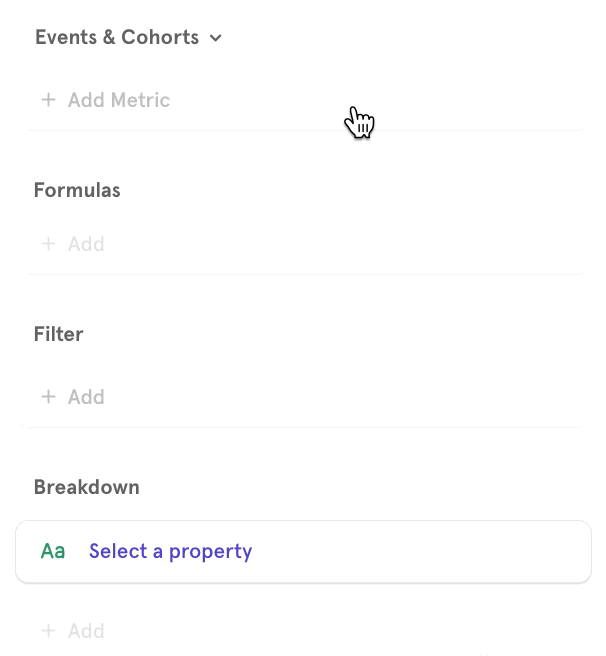 To break down the results of your report by any property or cohort, click the Breakdown.